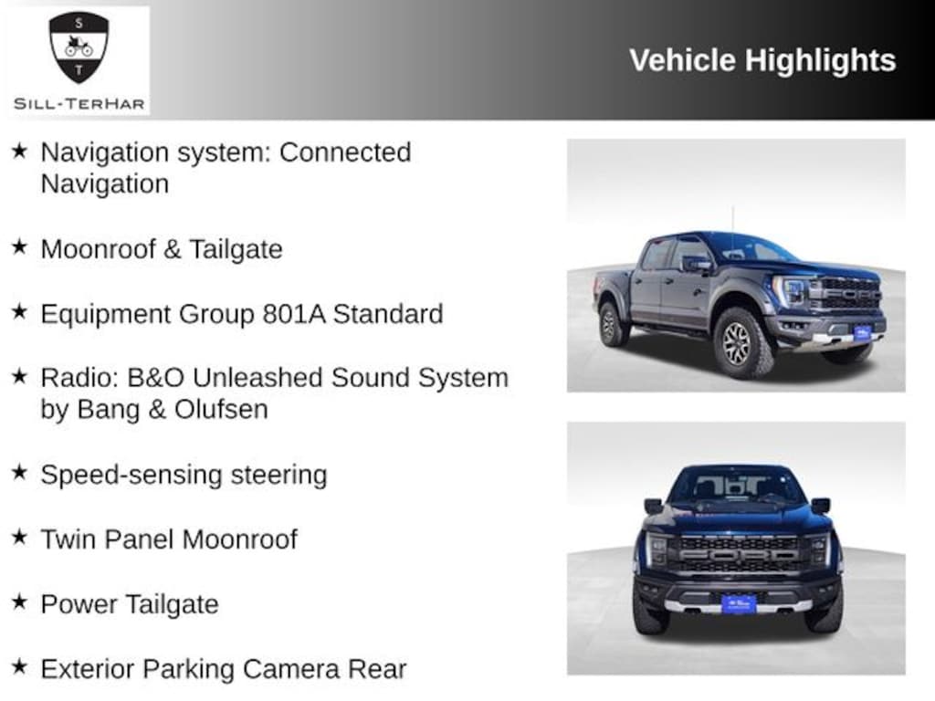This Raptor is equipped with an impressive array of features that make it the ultimate adventure companion. From the twin-panel moonroof that lets you take in the great outdoors, to the Pro Power Onboard system that provides 2KW of power for your tools or campsite, this truck is ready for anything.