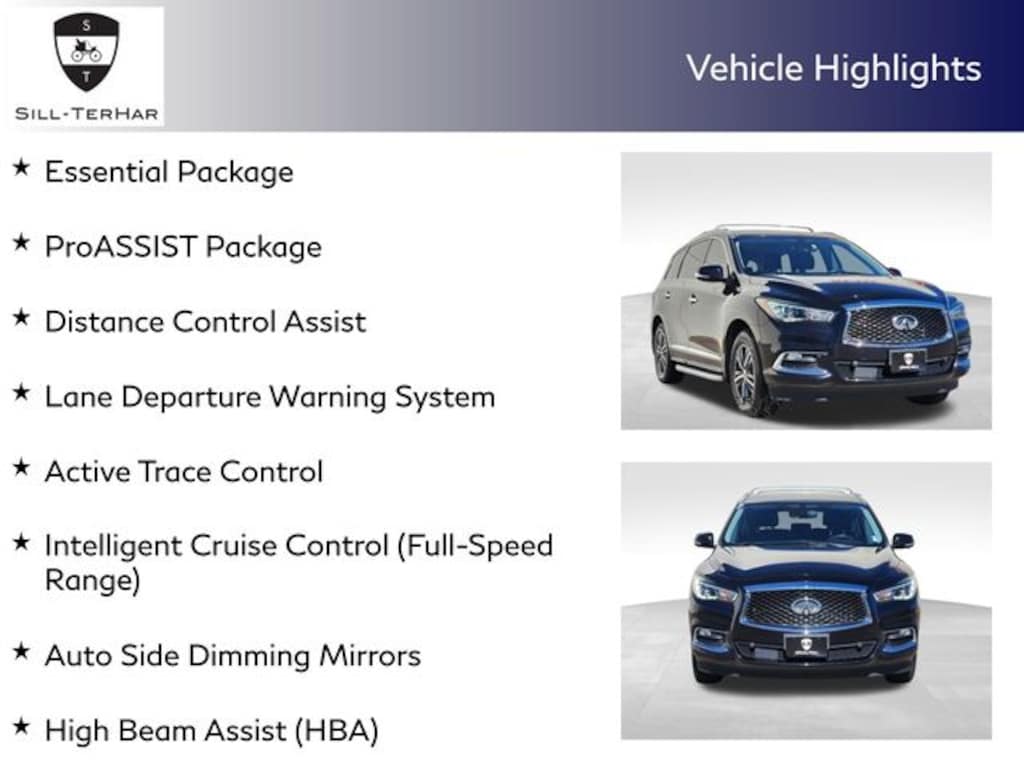 - Essential Package: Front & Rear Sonar Sensors, Around View Monitor, INFINITI InTouch Navigation, and more