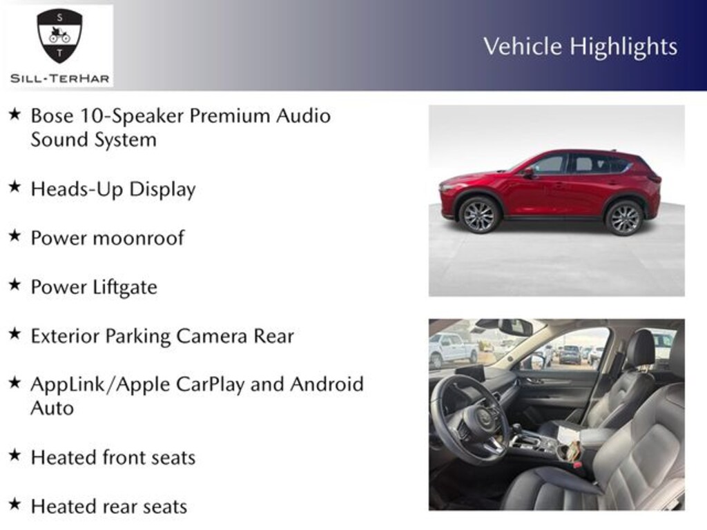 Step inside this well-equipped CX-5 and you'll be greeted by a cabin that exudes refinement and attention to detail. Luxurious leather-trimmed seats, a heated steering wheel, and a power liftgate provide unparalleled comfort and convenience. The Heads-Up Display and Mazda Connect infotainment system keep you informed and connected, while the expansive moonroof floods the interior with natural light.