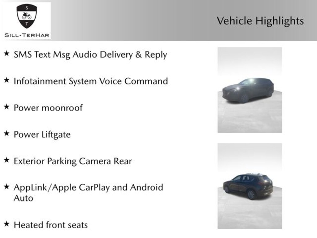 The CX-5 2.5 S Preferred Package is packed with a wealth of premium features that elevate the driving experience. Enjoy the convenience of the power liftgate, the connectivity of Apple CarPlay and Android Auto, and the comfort of heated front seats. The infotainment system's voice command and SMS text message integration keep you connected on the go, while the exterior parking camera provides added peace of mind when maneuvering in tight spaces.