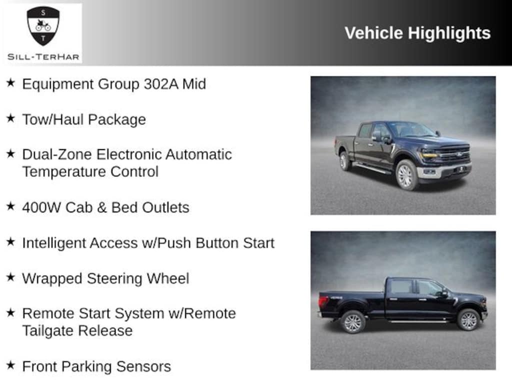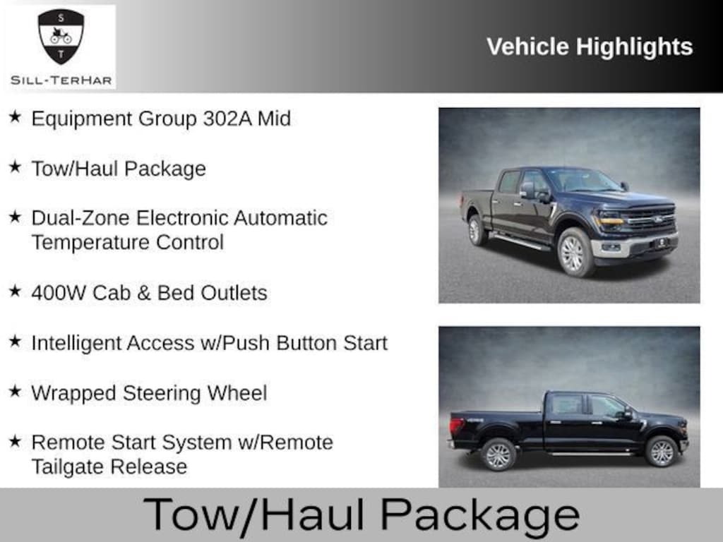 Agate Black Metallic 2025 Ford F-150 XLT 4WD 10-Speed Automatic 3.5L V6 EcoBoost This 2025 Ford F-150 is rare!, 360 Degree Camera, 400W Cab & Bed Outlets, 6" Angular Bright Anodized Step Bar, Adaptive Cruise Control w/Stop & Go, Auto-Dimming Rear-View Mirror, Black Painted Grille w/Chrome Center Bar, Chrome Door & Tailgate Handles, Chrome Single-Tip Exhaust, Cloth 40/Console/40 Front Seats, Connected Navigation, Driver State Detection, Dual-Zone Electronic Automatic Temperature Control, Equipment Group 302A Mid, Evasive Steering Assist, Ford Co-Pilot360 Assist 2.0, Front Parking Sensors, Heated Front Seats, Integrated Trailer Brake Controller, Intelligent Access w/Push Button Start, Power Glass Heated Sideview Mirrors, Power-Sliding Rear Window, Remote Start System w/Remote Tailgate Release, Tow/Haul Package, Towing Technology, Wrapped Steering Wheel. Price includes: $2000 - Retail Bonus Cash. Exp. 01/05/2026