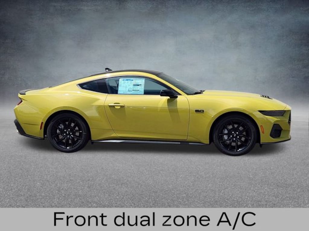 Intense Lime Yellow Metallic 2025 Ford Mustang GT Premium RWD 6-Speed Manual 5.0L V8 Ti-VCT ABS brakes, Alloy wheels, Compass, Electronic Stability Control, Front dual zone A/C, Heated door mirrors, Heated front seats, Illuminated entry, Low tire pressure warning, Remote keyless entry, Traction control. Price includes: $3500 - Retail Customer Cash. Exp. 01/05/2026