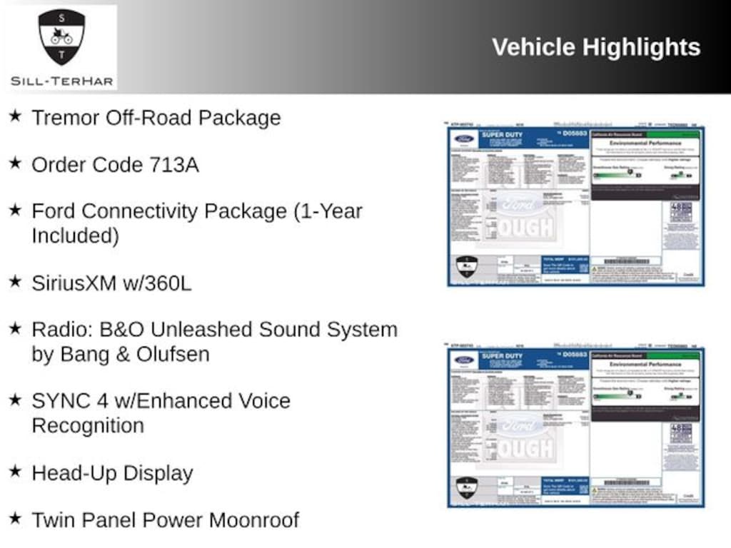 Avalanche 2026 Ford F-350SD 4WD 10-Speed Automatic Power Stroke 6.7L V8 DI 32V OHV Turbodiesel This 2026 Ford F-350SD is rare!, Ford Connectivity Package (1-Year Included), Head-Up Display, Order Code 713A, Radio: B&O Unleashed Sound System by Bang & Olufsen, SiriusXM w/360L, SYNC 4 w/Enhanced Voice Recognition, Textured Matte Finish Off-Road Running Boards, Tremor Off-Road Decal, Tremor Off-Road Package, Twin Panel Power Moonroof, Wheels: 18" Ebony Black Machined & Painted Aluminum.