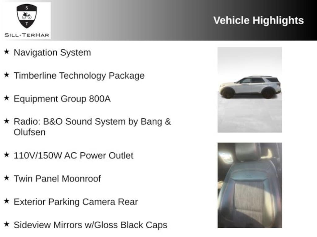 This 2023 Ford Explorer is rare!, 110V/150W AC Power Outlet, 3rd Row PowerFold Seat, Auto-Dimming Interior Rear-View Mirror, Equipment Group 800A, Exterior Parking Camera Rear, Navigation System, Radio: B&O Sound System by Bang & Olufsen, Sideview Mirrors w/Gloss Black Caps, Timberline Technology Package, Twin Panel Moonroof, Universal Garage Door Opener (UGDO), Wheels: 18" High Gloss Black-Painted Aluminum, Wireless Charging Pad.