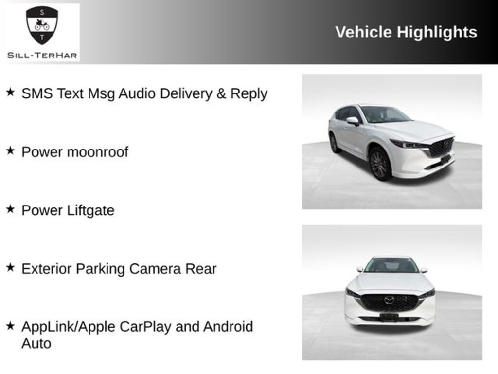 Designed with your comfort and convenience in mind, the CX-5 boasts a spacious and well-appointed interior, complete with Leather Seat Trim, Heated Rear Seats, and a Power Liftgate for effortless cargo loading. The Multifunction Commander Control and Hands-Free Keyless Entry add a touch of sophistication, elevating your driving experience to new heights.